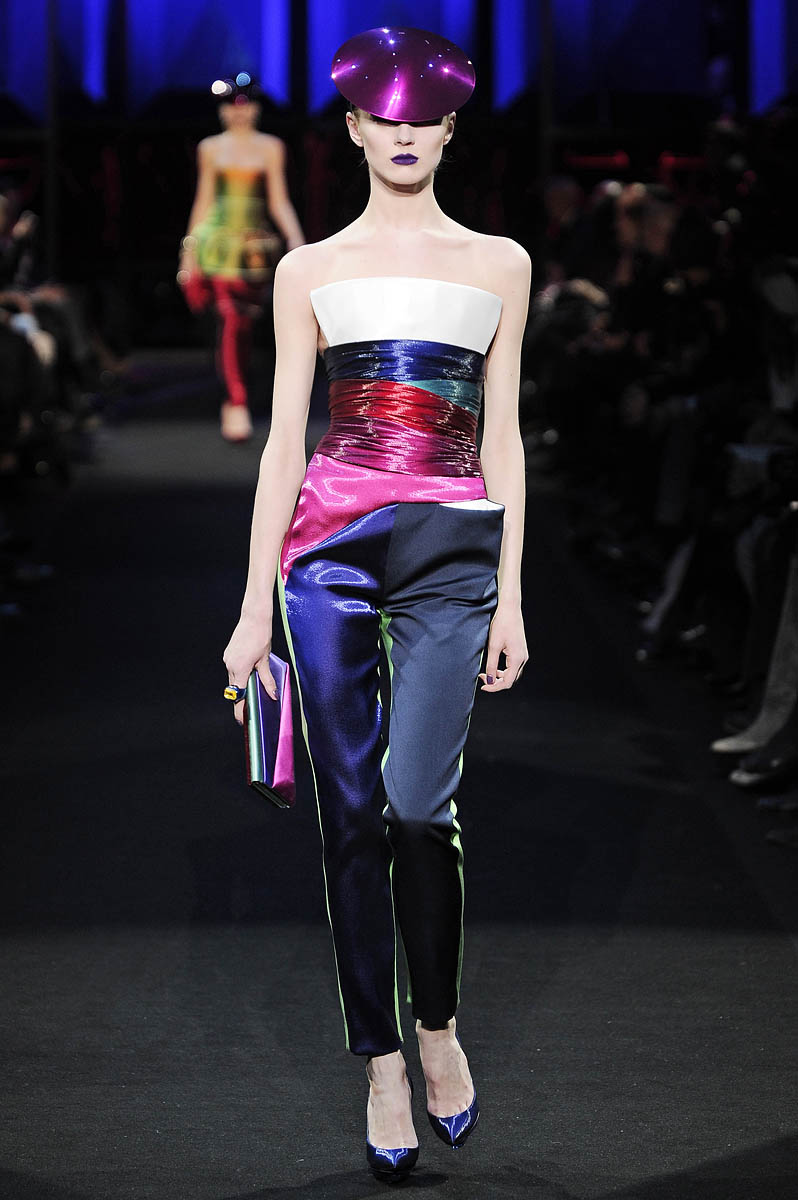 Another day, another fashion porn couture post. Today’s tasty treat comes to us courtesy of Giorgio Armani. If Galliano’s Dior show was a throwback to a glamourous past, Armani’s Privé collection was a look toward a shiny future.